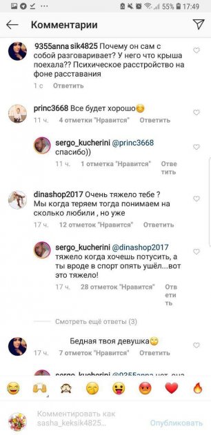 Заметно, что после данного действия подписчики напряглись и посчитали, что у Сергея начались проблемы с головой на фоне стресса. Действительно, очень странно выглядит, когда человек сам себе отвечает на публикацию. Возможно, он и дома, теперь, разговаривает сам с собой, предполагают встревоженные фанаты.
