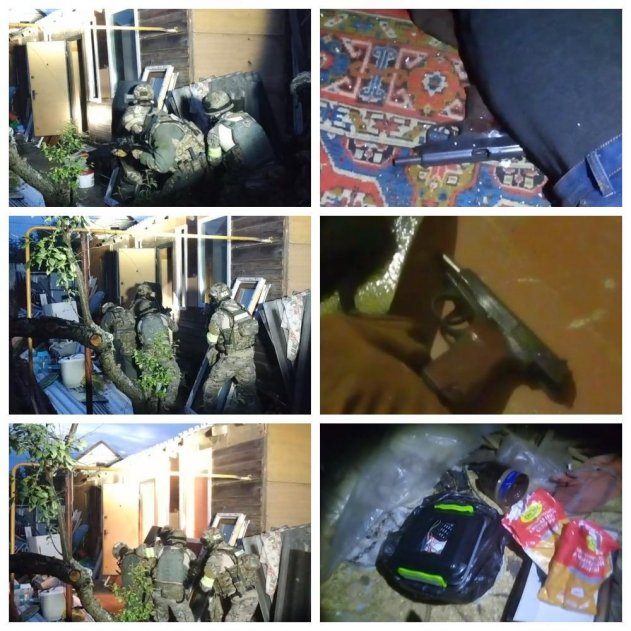 В доме сотрудники НАК обнаружили огнестрельное оружие, изготовленное злоумышленниками взрывное устройство, взрывчатые вещества и, даже, экстремистскую литературу.
