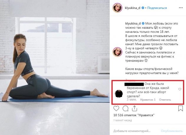 Несколько месяцев интернет-пользователи подозревали участницу романтического шоу «Холостяк» Дарью Клюкину в беременности. Более того, поклонники искренне надеялись, что отцом возможного малыша является именно рэпер Егор Крид. Однако сами знаменитости подобные слухи не подтверждали и не комментировали свой якобы роман, поскольку давно уже живут своей жизнью. А недавно Дарья и вовсе увеличила физические нагрузки после слухов о беременности, чем дала понять, что не находится в положении.