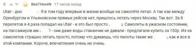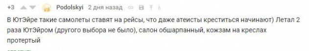 «UTair-дно. Самолёты в ужасном состоянии и до пассажиров им нет дела. Летать страшно», «От авиакомании «ЮТейр» такой вариант развития событий вполне реален», «В прямом смысле пламенный привет от UTair», - пишут пользователи Pikabu.