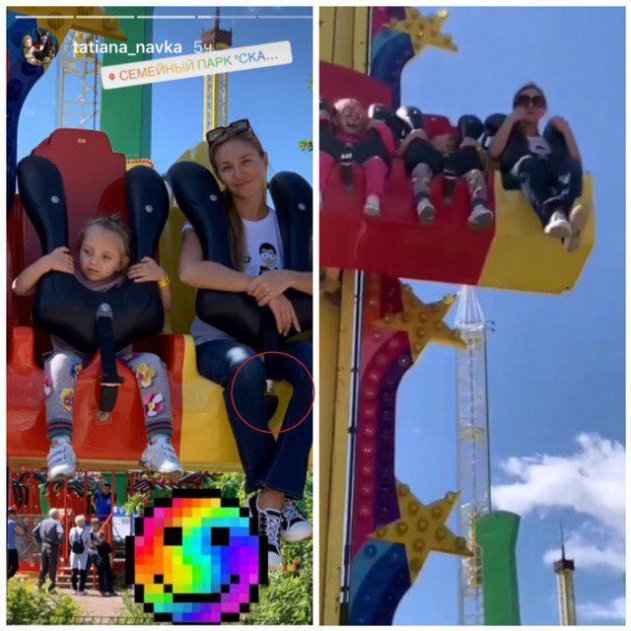 При этом на фотографии в сторис, выложенной Навкой в Instagram, видно, что прямо перед запуском аттракциона страховка Татьяны не закреплена. То есть себя она пристегнула в самый последний момент, что идёт в разрез не только с правилами безопасности, но и со здравым смыслом.