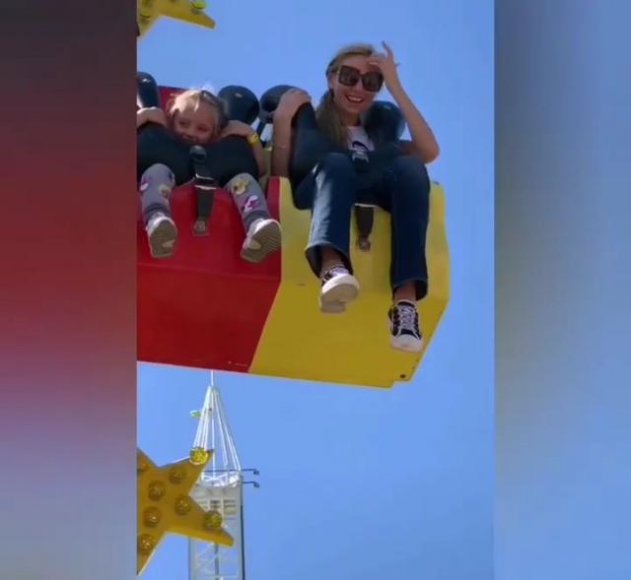 Навка с детьми посетила парк «Сказка» 19 марта. На аттракционе типа «Свободное падение», на котором людей в специальных креслах поднимают на несколько метров вверх, а затем резко опускают, Татьяна решила прокатиться с дочуркой Надей.