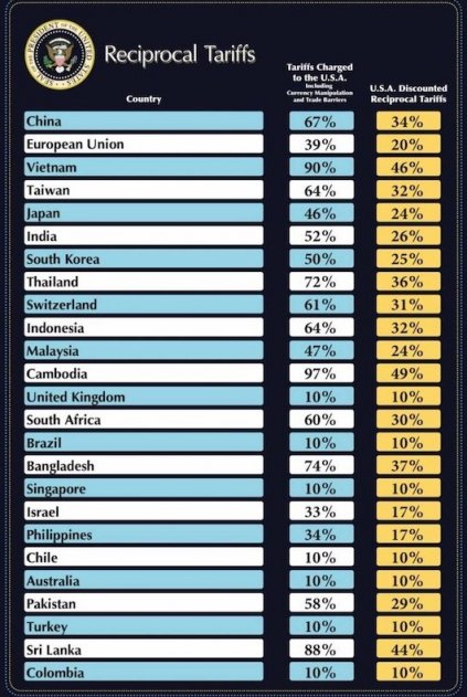 Президент США Дональд Трамп начинает торговую войну со всем миром. Объявлено о введении многочисленных пошлин.