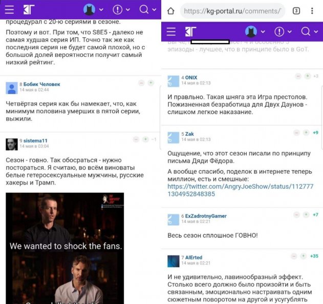 На данный момент обиженным престоломанам остаётся лишь оставлять негативные комментарии и сердито обновлять стандартные мемы. Пожизненная безработица для двух даунов», «Четвертая серия, как бы намекает, что как минимум половина умерших в пятой серии выжили», «Сезон г*вно», - пишут возмущенные фанаты.