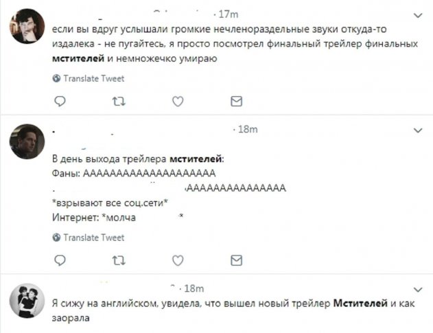 Стоит отметить, что после просмотра нового трейлера последних «Мстителей» многих россиян, что называется, «порвало» не на шутку. Большинство комментаторов разрываются между эмоциональным экстазом и отчаянием. Среди самых популярных заявлений: «Боже, как жить?!», «Мой мир рухнул! Срочно валерьянки», «Я не переживу окончания фильма, надо что-то немедленно искать на замену».