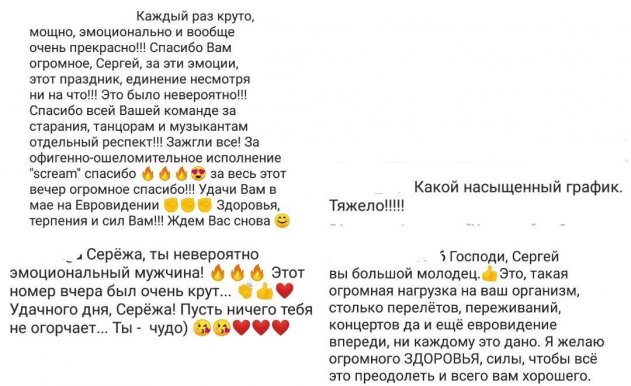 Судя по отзывом поклонников, в последнее время Сергей Лазарев стал чересчур эмоциональным. Фанаты опасаются, что большие нагрузки, перелеты и стресс накануне «Евровидения» довели певца, и Сергей Лазарев на грани нервного срыва.
