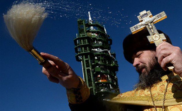 По российскому телевидению также показывали, как священники кропят святой водой МБР «Тополь», прибывающие в Москву на ежегодный парад 9 мая в честь победы над нацистской Германией.
