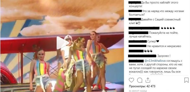 Татьяна Навка спела с Алсу, сделала она это, отметили фанаты, «под фанеру». Поклонники считают, что фигуристка «опозорилась ради подруги», ведь ее пение мало кому понравилось, а ее дружба с Алсу могла стать причиной такого эксперимента. «С подругами в караоке надо петь, а не на сцене. Вы даже двигаться на сцене не умеете, не то, что петь. Жалко только среди всех ваших гостей, кроме Алике, некому Вам об это сказать», - заявила одна из подписчиц.