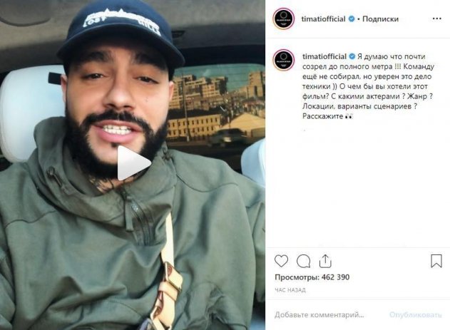 Совсем недавно Тимати объявил о показе одежды, которую он разрабатывал для армии России совместно с Минобороны. Артист уже очень давно сотрудничает с правительством, открыто поддерживал президента РФ Владимира Путина, так что нет ничего удивительного в том, что сотрудничество с властью у Тимура Юнусова (настоящее имя Тимати) перешло на новый уровень. Но сегодня репер прямо сообщил, что решил стать режиссером, и самый резонный вопрос здесь: Минкульт будет спонсировать его фильм?