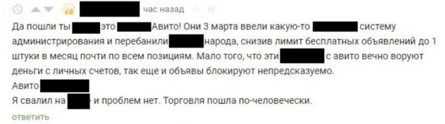 Однако не факт, что после этой истории ему будет интересно такое сотрудничество. В интернете мужчине советуют уйти к конкурентам. Некто особенно яростно высказывается об Авито. Сообщает, что после 3 марта заблокировали множество продавцов, а лимит бесплатных объявлений снизился до одного в месяц. Если верить россиянам, Авито и сами не грешат мошенничеством, воруя деньги с чужих личных счетов. Если подобные истории станут массовыми, продавцы Авито без раздумий начнут обогащать конкурентов.