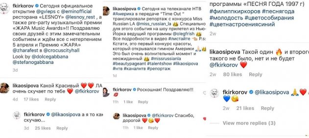 Примечательно, что Киркоров и женщина постоянно оставляют смайлики-сердечки под фотографиями друг друга и буквально засыпают комплиментами. Также в Сети можно найти много их совместных фотографий в обнимку, на каждой из них парочка счастлива. Не исключено, что у Филиппа назревает роман, или он уже давно состоит в отношениях, но не афиширует их. В любом случае, эта новость может разбить сердце Бузовой, которая двусмысленными намеками может давать понять о желании любовных отношений со «своим королем». Помимо этого, может огорчится и Пугачева, которая может до сих пор считать Киркорова своим верным мужчиной.