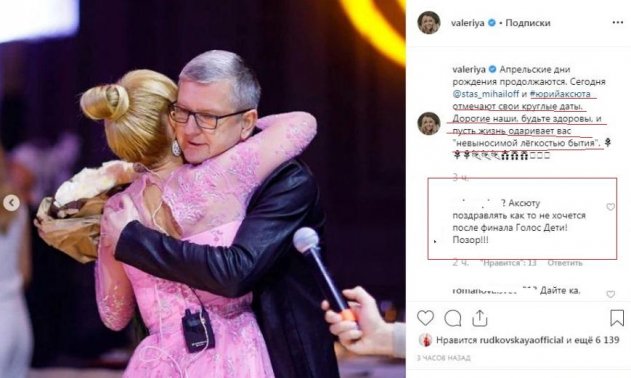 Несмотря на волну негатива, поздравить Аксюту решилась Валерия: в соцсети певица опубликовала совместный снимок, пожелав крепкого здоровья и лёгкости бытия. Стоит отметить, фанаты поступка певицы не одобрили, намекнув, что Валерия поздравлением Аксюты рискует испортить карьеру, что, очевидно, не простит Пригожин, который так много сил вложил в артистку. Не исключено, что из-за скандального разбирательства с мошенничеством на детском шоу-талантов дружба с Аксютой может негативно отразиться на репутации Валерии.