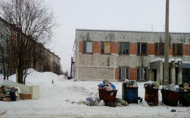 Видимо, от безысходности, жители в Апатитах начинают выносить мусор к дверям горадминистрации. Впрочем, отмечают они, и там ситуация ничуть не лучше.