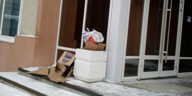 Так она дошла до здания горадминистрации. У её дверей стояла урна, но и она оказалась переполненной. Отчаявшаяся женщина всё же смогла водрузить сверху этого «срача» ещё и свой пакет с мусором.
