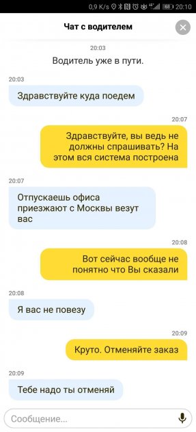 Водитель Яндекс. Такси не захотел везти пассажира, но списал деньги с карты за поездку.