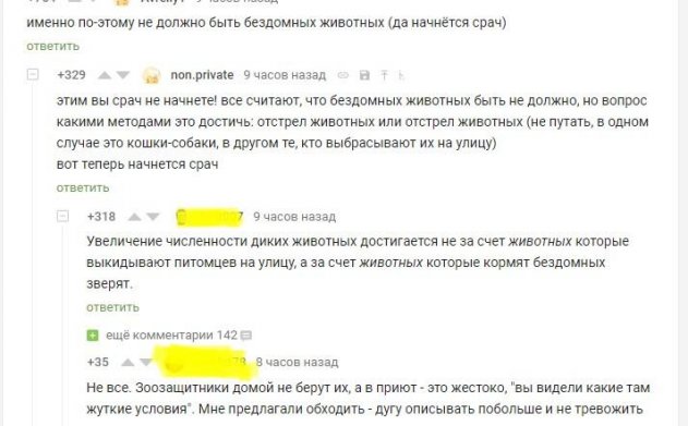На вышеуказанном форуме практически все комментаторы согласились - бродячие животные являются некой эпидемией современной России, несмотря на то, что наша страна шагнула во многих сферах далеко вперед. Конечно же, этим должны заниматься соответствующие организации, а не обычные россияне, ведь так по случайности можно наделать много ошибок.
