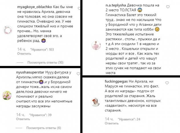 «Богатые задвигают талантливых», - пишут пользователи. Люди сошли во мнении, что Бородина и Самойлова покупают своим дочерям призовые места на соревнованиях.