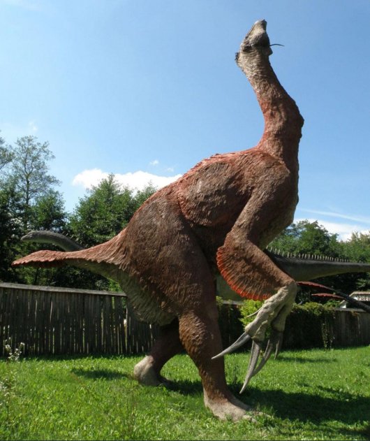 Теринозавру достались в подарок от эволюции перья, но он использовал их не для полётов, а как нагревательный прибор и ради привлечения половых партнеров. Палеонтологи признали данный подвид самым странным динозавром из-за оригинального внешнего вида и огромных когтей.