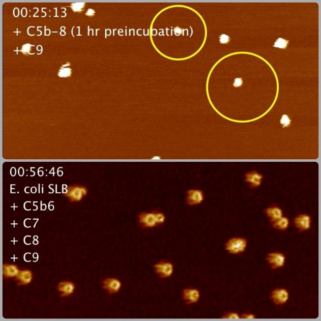 Во время эксперимента учёные сняли момент убийства бактерий иммунной системой. Отслеживая процедуру, специалисты отметили, что через некоторое время после начала атаки формирование отверстий прекращается. По их мнению, для окончания отверстия необходимо 18 копий MAC. При вводе первой копии на оболочку бактерии ее копии быстро занимают место рядом с ней.
