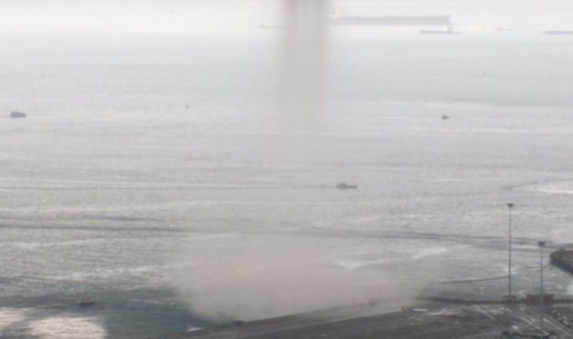В паромном терминале Танджонг Пагар рядом с деловым центром Сингапура сегодня прошел гигантский торнадо. Работники близлежащих офисов сняли происходящее на видео и заметили странную природу смерча, который с медленностью нетипичной для смерча проплывал мимо лодок и барж.