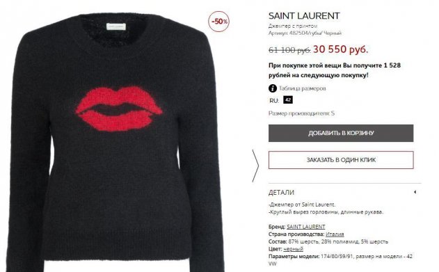 Более того, платье на Дженнер это далеко не первый пример использования Saint Laurent принта губ. В одном из последних вариантов губы появлялись на джемперах модного бренда, стоящих от 30 до 60 тыс. рублей.