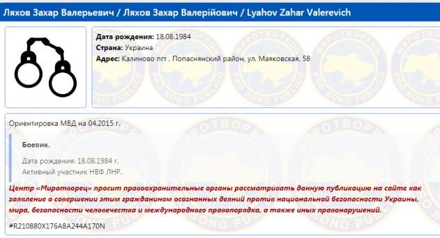 Ляхов — активний учасник незаконних збройних формувань, фігурант бази «Миротворець».