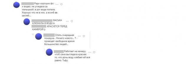 Через несколько секунд просмотра видео становится понятно, что Оля слишком сильно увлеклась процессом позирования и не замечает того, что дочка буквально хлебает из бассейна. Тот факт, что ребенок напился воды не ускользнул и от подписчиков.