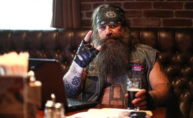 38-сантиметровая борода, рост 188 сантиметров, необъятная спина. К этому добавляются пирсинг и бесчисленные татуировки на руках, шее, лице и обритых частях головы. Сколько их у него? Он утверждает, что уже сбился со счета. Тридцать? «Маловато берешь», — отвечает он. С его брутальным обликом контрастирует мягкое поведение и спокойный голос. «За бородой надо уметь ухаживать. Это не так просто», — смеется он.