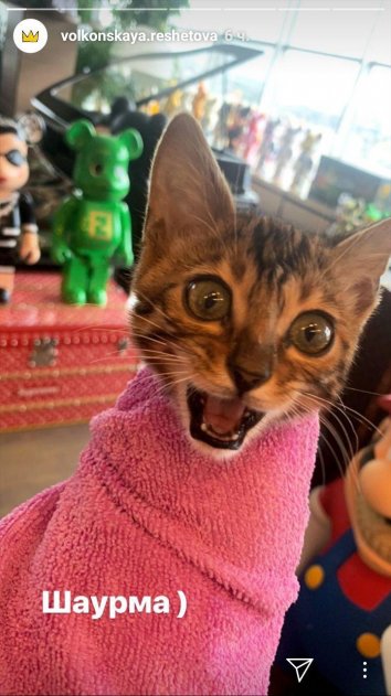Не так давно в «семейном гнездышке» Анастасии Решетовой и Тимати появился котенок. По словам модели, его подарили знакомые, но она не планировала оставлять питомца. Вскоре все его полюбили, и теперь на странице модели постоянно появляются фото и видео с его участием. Примечательно, что ее отношение к нему весь странное. Недавно она опубликовала снимок, на котором завернула котенка в полотенце и сделала так называемую «шаурму». Видимо, юмор у звезды специфический и не всем понятный, зато ей совсем не скучно.