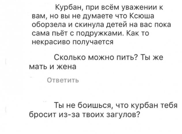 Супруг Бородиной Курбан публикует видео и снимки только с детьми: младшей Теоной и старшей Марусей. По словам подписчиков, раньше всё было совсем наоборот и сейчас Бородина «прогнула» Омарова. Люди задаются вопросами «как?» и «почему?».