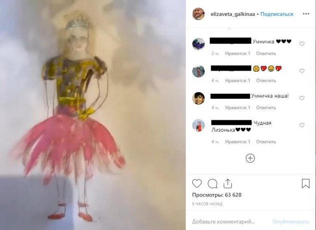 Так, накануне на фан-аккаунте Лизы появилось видео, на котором 70-летняя певица вместе с ней взялась за краски. Она сообщила, что хочет нарисовать дочку и попросила у нее тонкую кисть, а во время работы все просила принести ей очки. Через время она показала, какой рисунок у нее получился.