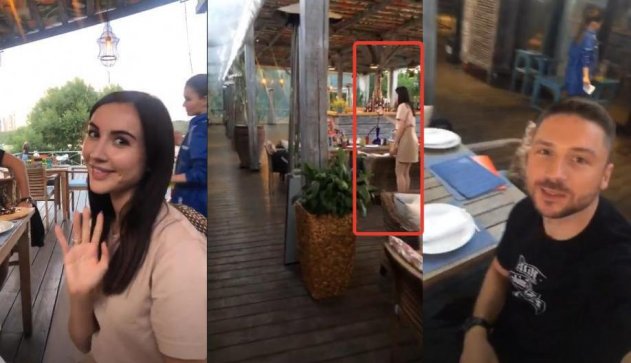 После этого он показал место, где они отдыхали с ее друзьями и дополнил все это фразой: «Сидим и у нас все прекрасно».